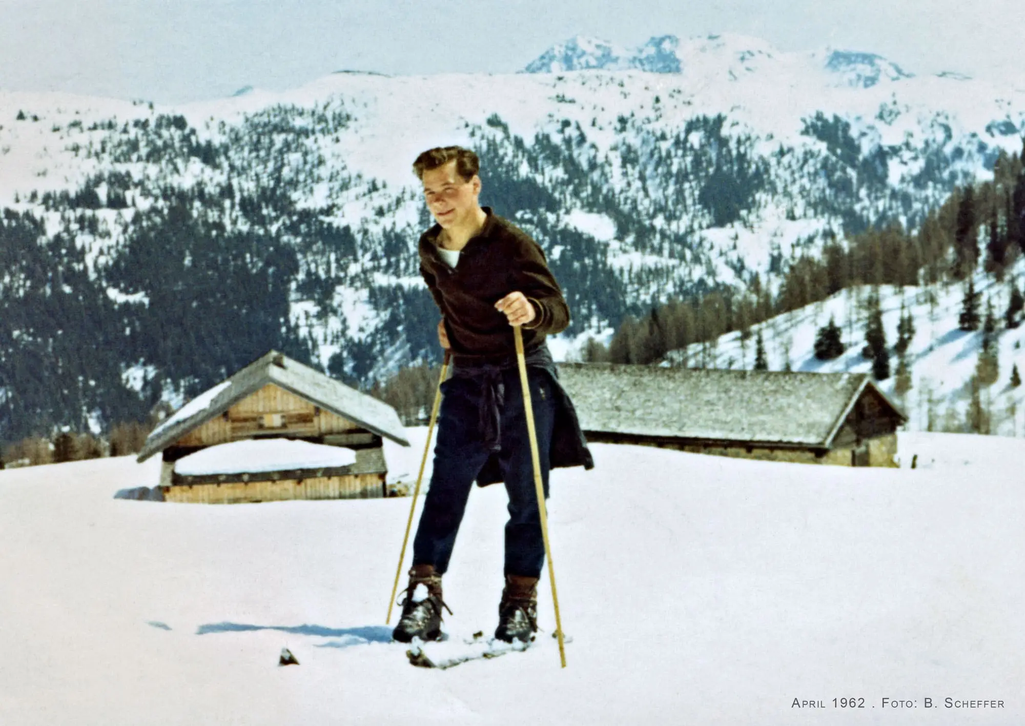 Compared to today, the journey was really arduous back then. Guests had to walk from Altenmarkt to Zauchensee. In 1936, grandfather Peter Walchhofer foresightedly registered the first transport business with a horse-drawn carriage, with which he transported the guests' luggage. This was a comfortable improvement that was very well received. There were no prepared slopes, so you had to walk up the mountain with touring skis before descending. Wrapped in warm clothes, with knitted gloves and skis with cable bindings, you went down the deep snow slopes at a rapid pace after an arduous ascent. That took guts.